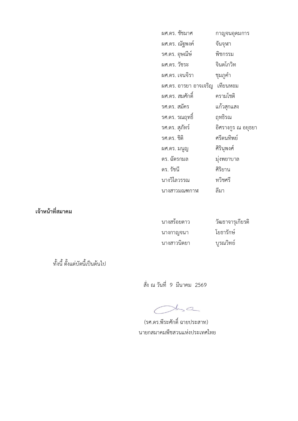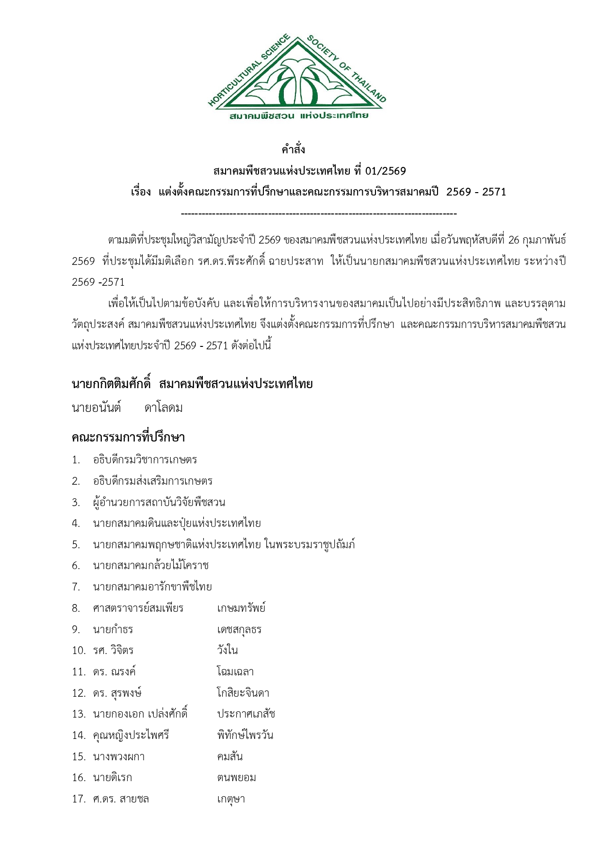 กรรมการสมาคมพืชสวนแห่งประเทศไทย ปี 2569-2571